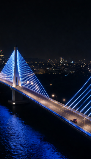 Karimnagar Cable Bridge, Telangana | 24V rainproof drivers enabling seamless façade and cable illumination, delivering resilient performance with striking visual precision across the structure