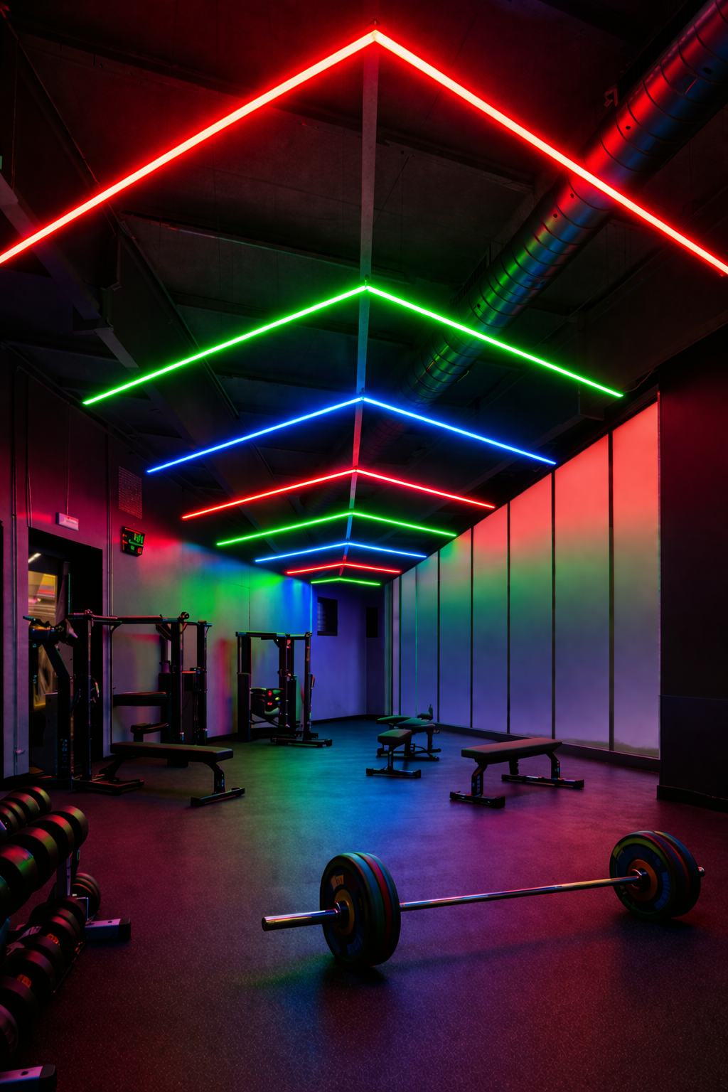 Unlimited Fitness Club, Andaman & Nicobar Islands | RGB strip lighting orchestrated in seamless color transitions, shaping a bold and immersive fitness environment