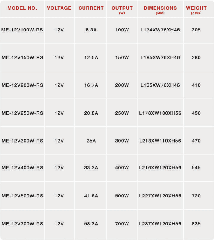 OUTPUT – 12V / 25A / 300W