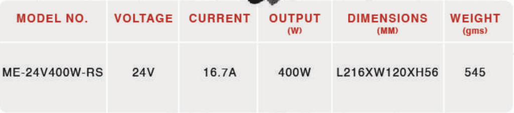 OUTPUT – 24V / 16.7A / 400W