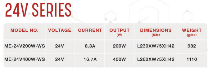 OUTPUT – 24V / 8.3A / 200W